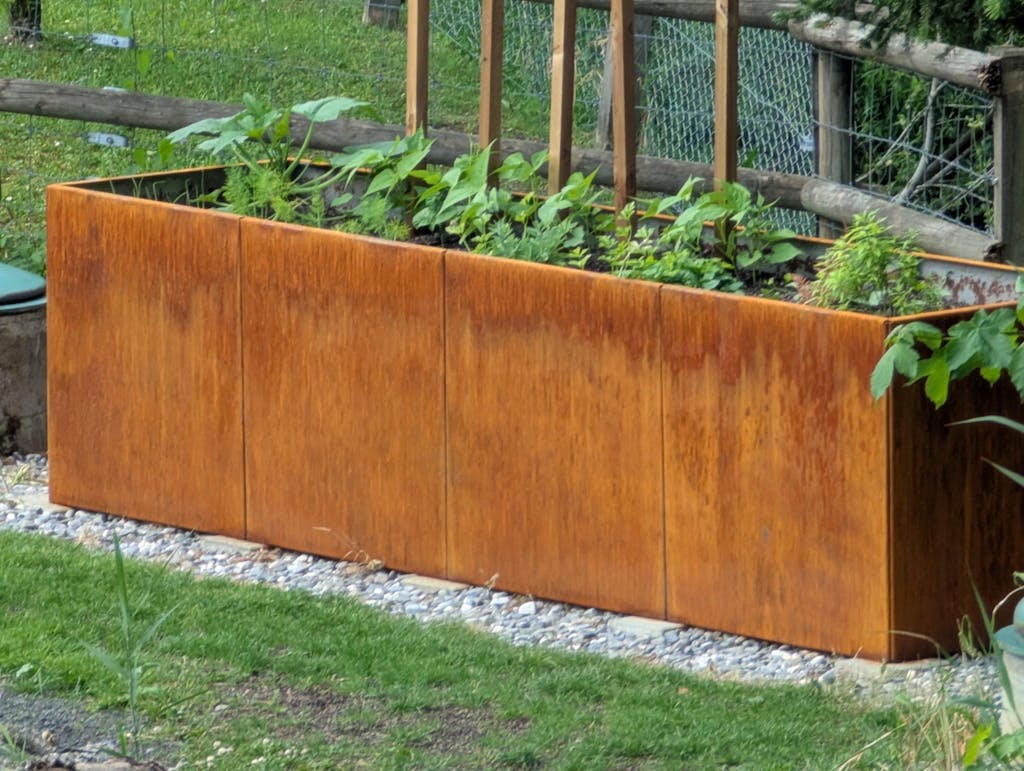 Il termine acciaio corten è molto diffuso, ma pochi sanno che può essere dannoso per la salute di uomini, animali e piante, in quanto l'acciaio corten contiene metalli pesanti. Per questo motivo, per i nostri prodotti utilizziamo il normale acciaio ricavato dal ferro naturale, che contiene anche minerali preziosi per le piante. Con il passare del tempo, i nostri articoli sviluppano uno strato unico di acciaio inossidabile, che conferisce a ciascun pezzo una propria individualità.